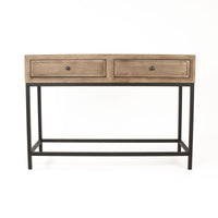 Rectangular console with limed grey oak top and metal base with two drawers.