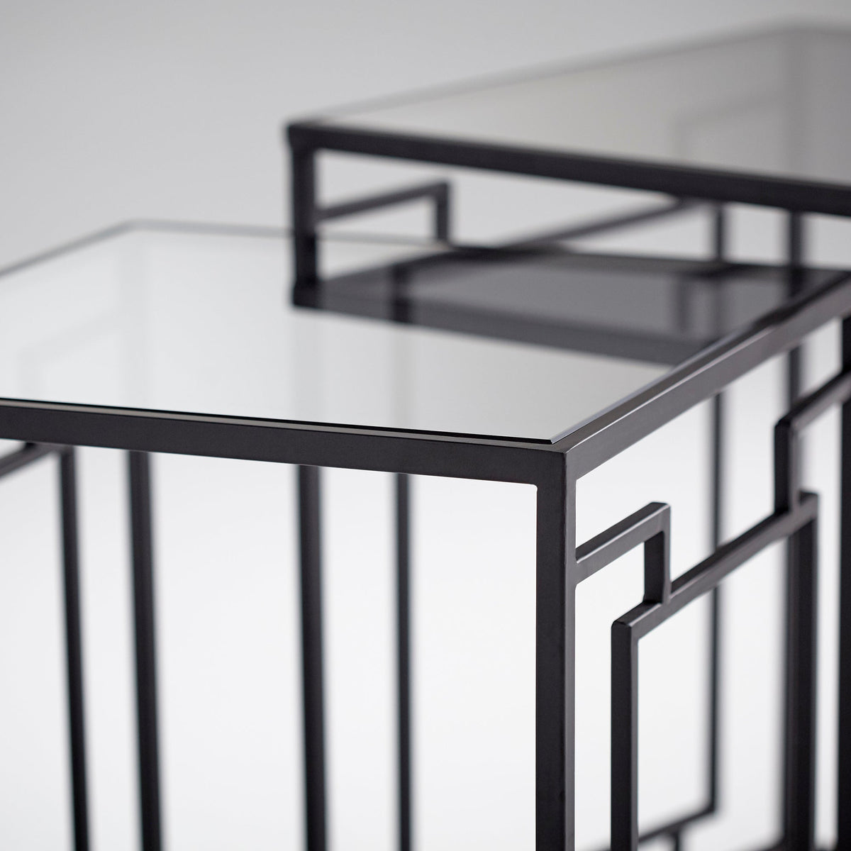 Add a touch of geometric styling to your residential or commercial design projects with the stunning, square Galleria nesting tables. These accent furnishings sport a clear glass surface top nestled into a boxed frame. The frame's design features overlapping square and rectangular patterns that keep these accent tables grounded in modern-minimalist style. An excellent pairing for any industrial loft themed decor or contemporary commercial lobby space.