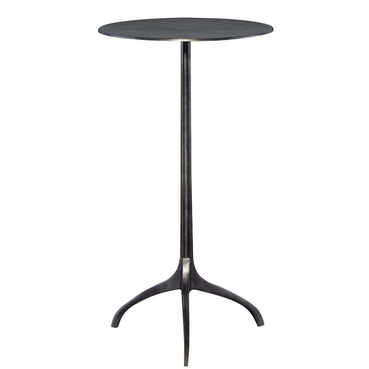 Showcasing Industrial Styling, This Handcrafted Accent Table Features An Solid Cast Aluminum Construction With A Tripod Base Finished In Antique Nickel.