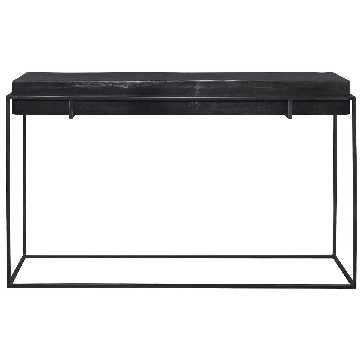 With Modern Minimalist Styling, This Console Table Features A Thick Cast Aluminum Top With Natural Texturing Finished In A Plated Antique Black, Resting In A Coordinating Aged Black Iron Base.