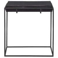 With Modern Minimalist Styling, This Side Table Features A Thick Cast Aluminum Top With Natural Texturing Finished In A Plated Antique Black, Resting In A Coordinating Aged Black Iron Base.