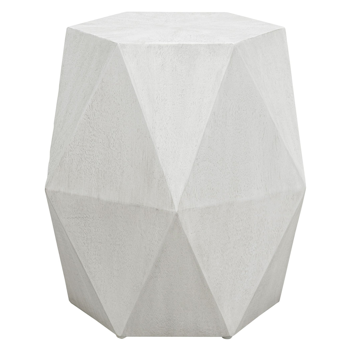 This Unique Geometric Accent Table Features A Sunburst Top In Mango Veneer In A Fresh White Ceruse Finish.